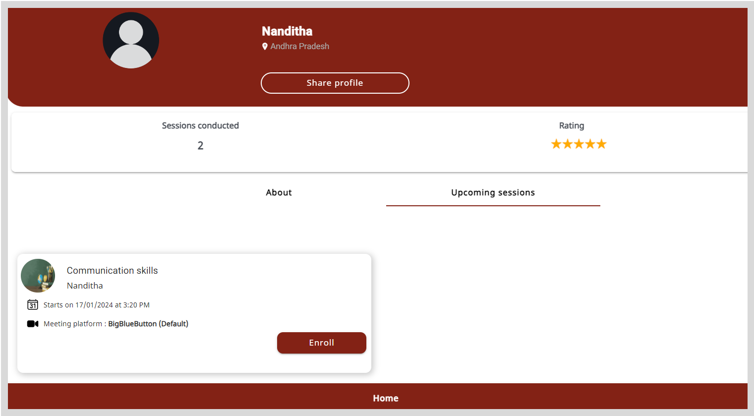 - Go to the Upcoming sessions tab to view the sessions created by the mentor.