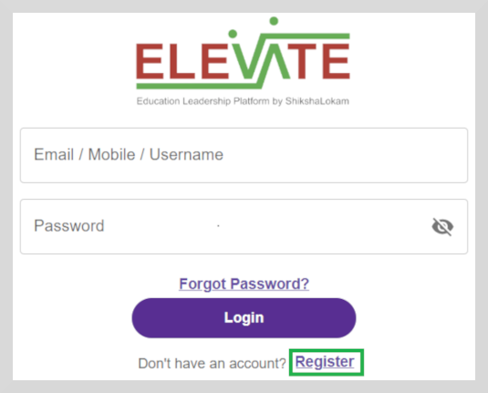 From the Login page, click Register. The registration form appears.