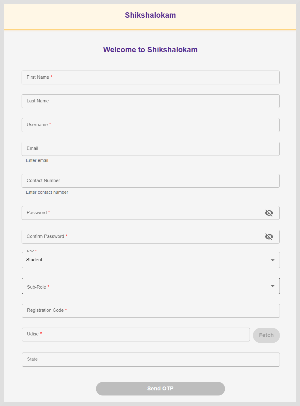 Click Send OTP. An OTP is sent to your registered email ID.